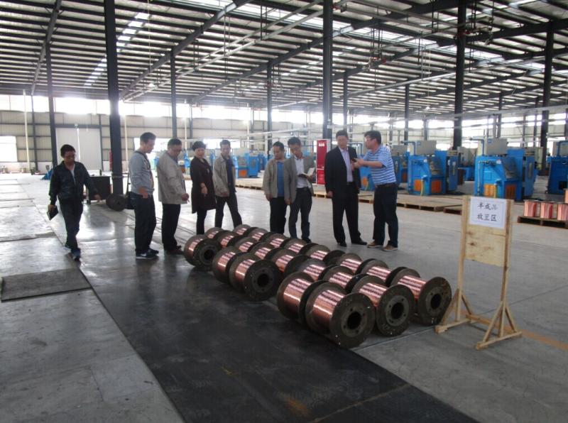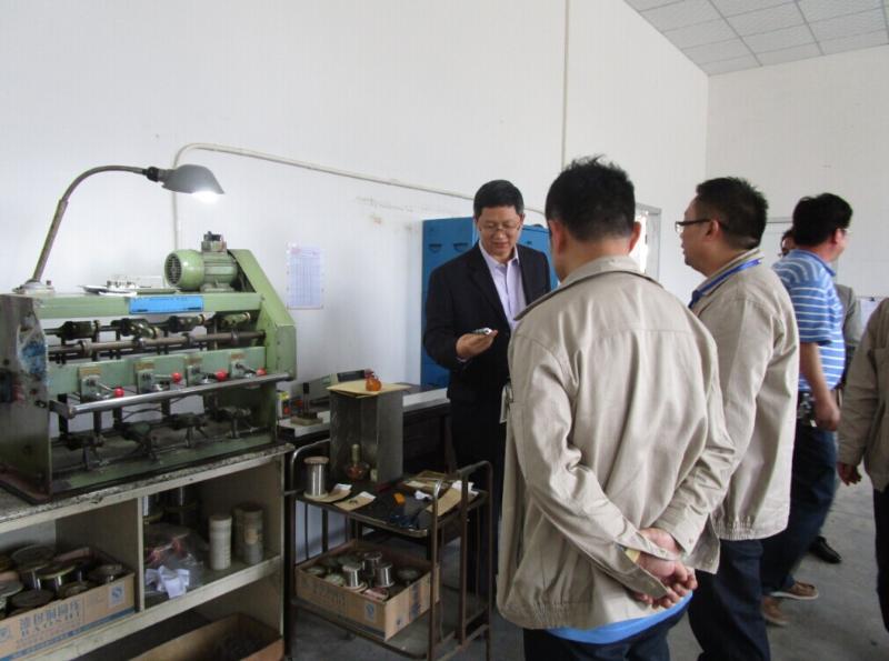 2014年10月21日,重慶力華自動化技術有限責任公司劉總一行共四人來我公司考察,在接待廳短暫休息后,主持公司工作的常務副總戴建崇帶領力華領導們分別參觀了我公司新辦公大樓、拉絲車間、包漆車間、檢驗室、庫房等。